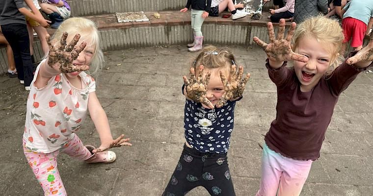 Er werden heuse moddersoepjes gekookt, modderkunstwerken gemaakt en zelfs schilderijen geschilderd met modder als verf. Spelenderwijs ontdekten de kinderen nieuwe materialen, werkten ze samen en gebruikten ze al hun zintuigen.