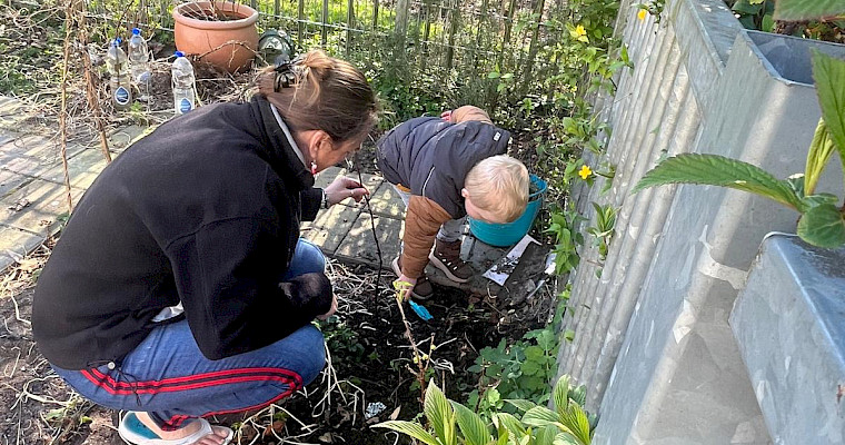 Op het KDV werd hard gewerkt, daar werden de plantjes weer de aarde in gezet, samen met de kinderen natuurlijk!
