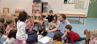 Kleuters delen wat ze leuk vinden met spelen en aantrekken tijdens Mix en Ruil.