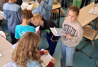 De kinderen van groep 6/7 gingen op boekenspeeddate tijdens de KBW.