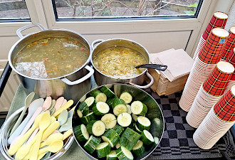 Laatste oogst uit de schoolmoestuin en bloemen geplant voor de zomervakantie.
